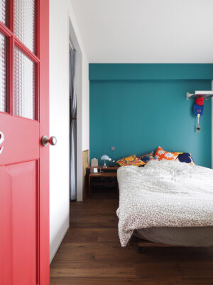 完成した住まいは、キッチンを中心に、人と犬、そして思い出が自然につながる、広がりをもった空間。回遊式の間取りとしたことで、気持ちのいい風が通る心地の良い家となりました。子どもの頃からの思い出が詰まったチークのダイニングテーブルや食器棚は、メンテナンスを施し、新しいレイアウトで再び暮らしの一部に。海外生活で集められた数々の思い出の品も整理され、この住まいにふさわしい形で息づいています。好きな色をバランスよく取り入れ、いつでも思い出の地を感じる空間に仕上がりました。